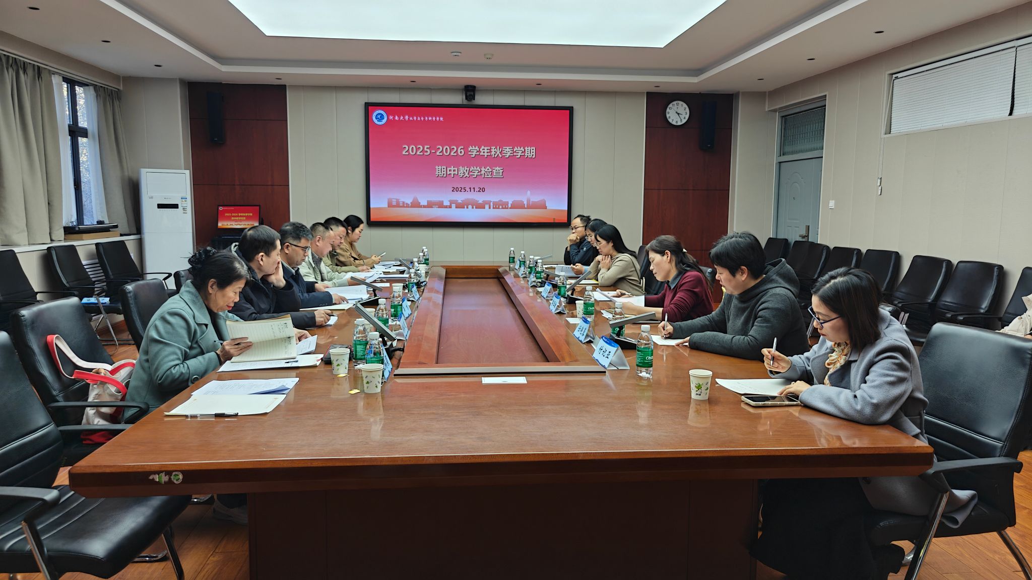 2025年11月20日,学校期中教学检查工作组莅临色中色 开展本科教育教学专项检查与督导。工作组由教务处副处长朱显峰、督导组组长郭蜀光等组成。学院党委书记常凤香、教学负责人李亚敏、各系室主任、学院督导组及教务办公室相关人员参加会议。会上,检查组组长朱显峰介绍了本次教学审核评估及期中教学检查的目的与具体要求,结合近年来学校督导工作情况,强调要重点关注教学大纲、教案编写、教学进度执行、课堂教学质量、学业预警及帮扶机制等方面。...