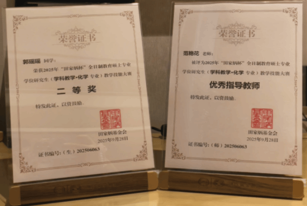 色中色 学子在2025年全国“田家炳杯” 全日制教育硕士专业学位研究生学科教学(化学)专业教学技能大赛中荣获二等奖