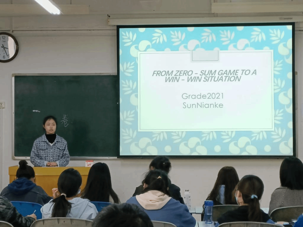 本次演讲以“From zero﹣sum game to a win﹣win situation”为主题,由参赛选手针对主题做时长约三分钟的演讲。参赛选手们满怀热情,慷慨激昂,用自己独特的风格表达出了自己对演讲主题的深刻理解。