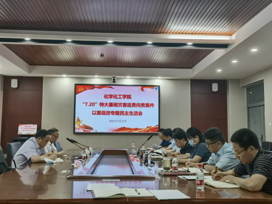 “7·20”特大暴雨灾害追责问责案件以案促改专题民主生活会在学院220会议室召开。校纪委正处级纪检监察员王春晓、党委组织部组织科科长翟志远代表学校党委出席,学院全体领导班子成员参加了本次会议。会议由学院党委书记翟新礼主持。