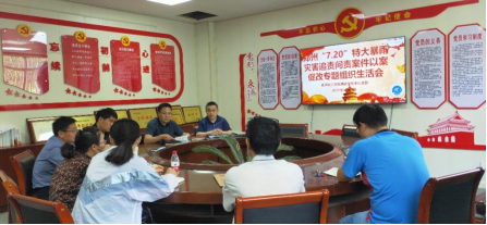 党员活动室召开了郑州“7.20”特大暴雨灾害追责问责案件以案促改专题组织生活会,负责本支部院级党员领导张磊副院长参加会议,会议由测试实验中心党支部书记张予东主持。