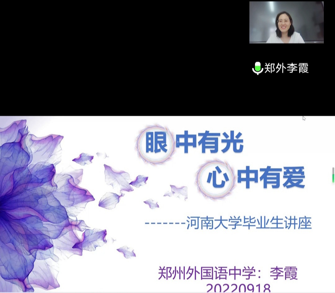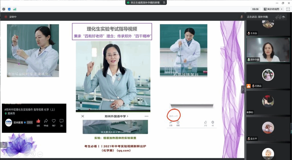 于9月18日下午通过网络平台召开了第三次教育实习讲座。郑州市外国语中学化学教研组长李霞应邀出席,2019级化学专业全体学生及实习指导老师参加会议。