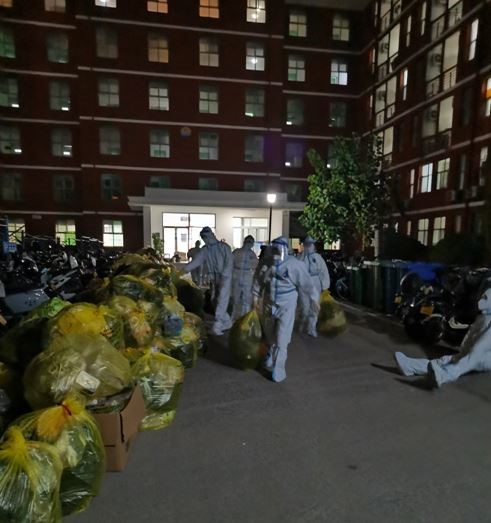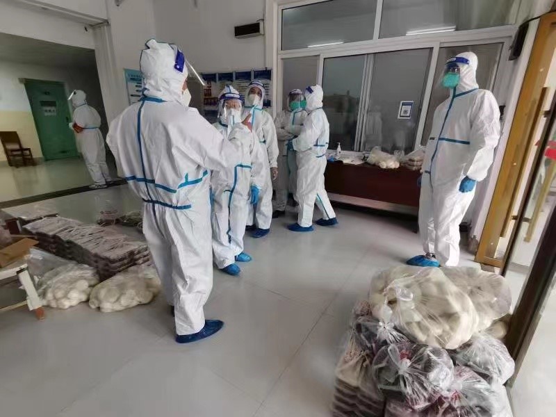聂亚敏老师因为加班补实验被突如其来的疫情封闭在学校,“很荣幸地成为一名志愿者,负责16号楼的宿舍送餐。根本没想过16号楼是防疫压力最大的一栋楼,也没有想过自己面临的安全问题,心里只想着孩子们能够吃口热乎的饭菜。”尽管拎着20盒饭菜让聂老师有点儿吃力,但她还是一口气把饭菜拎到六楼。为了能够把900多份饭菜以最快的速度送到孩子们手里,党委副书记马文海带领着16号楼的全体志愿者总结一次次的送餐经验,根据出现的问题及时调整策略。
