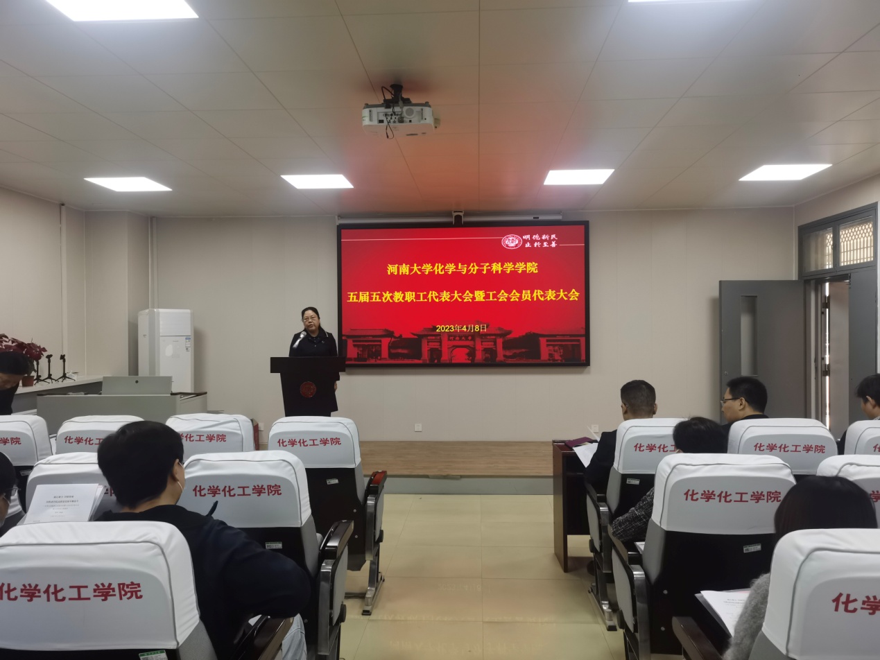 工会主席马文海致大会闭幕词,他首先对本次会议进行了总结,充分肯定了各位老师为学院发展建设提出的宝贵意见和建议,强调了老师们对学院抓住机遇促发展的迫切愿望是学院发展的基本保障。他号召全体教师员工,坚持以习近平新时代中国特色社会主义思想为指导,认真贯彻落实党的二十大精神,以化学学科提升为突破点,凝心聚力促发展,培根铸魂育英才,为推进学院高质量发展和色中色