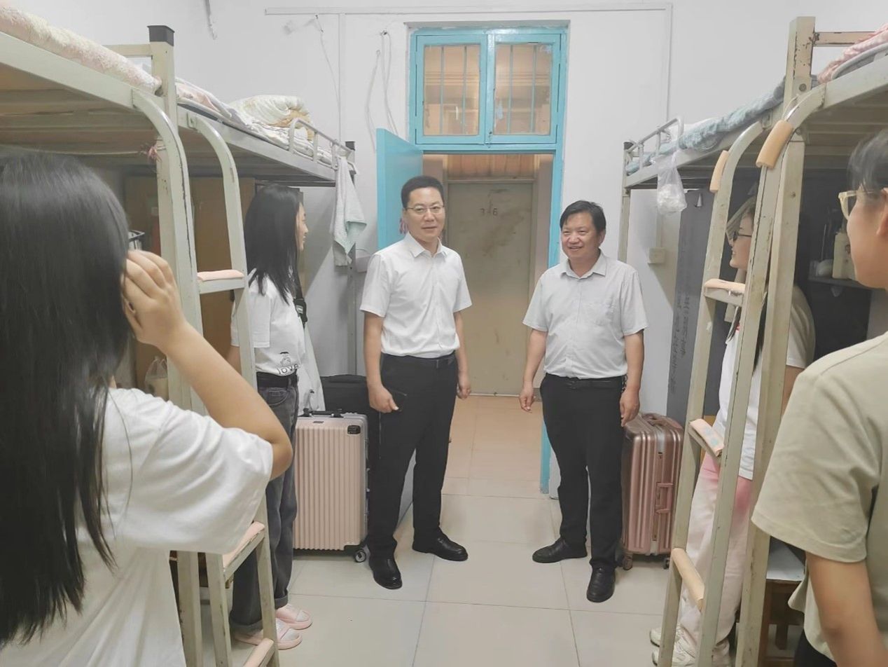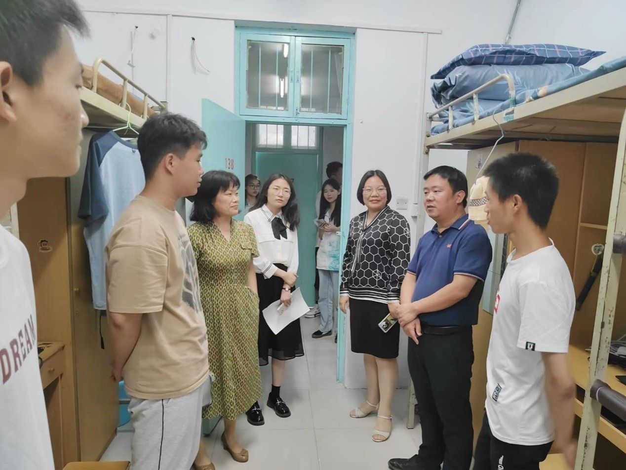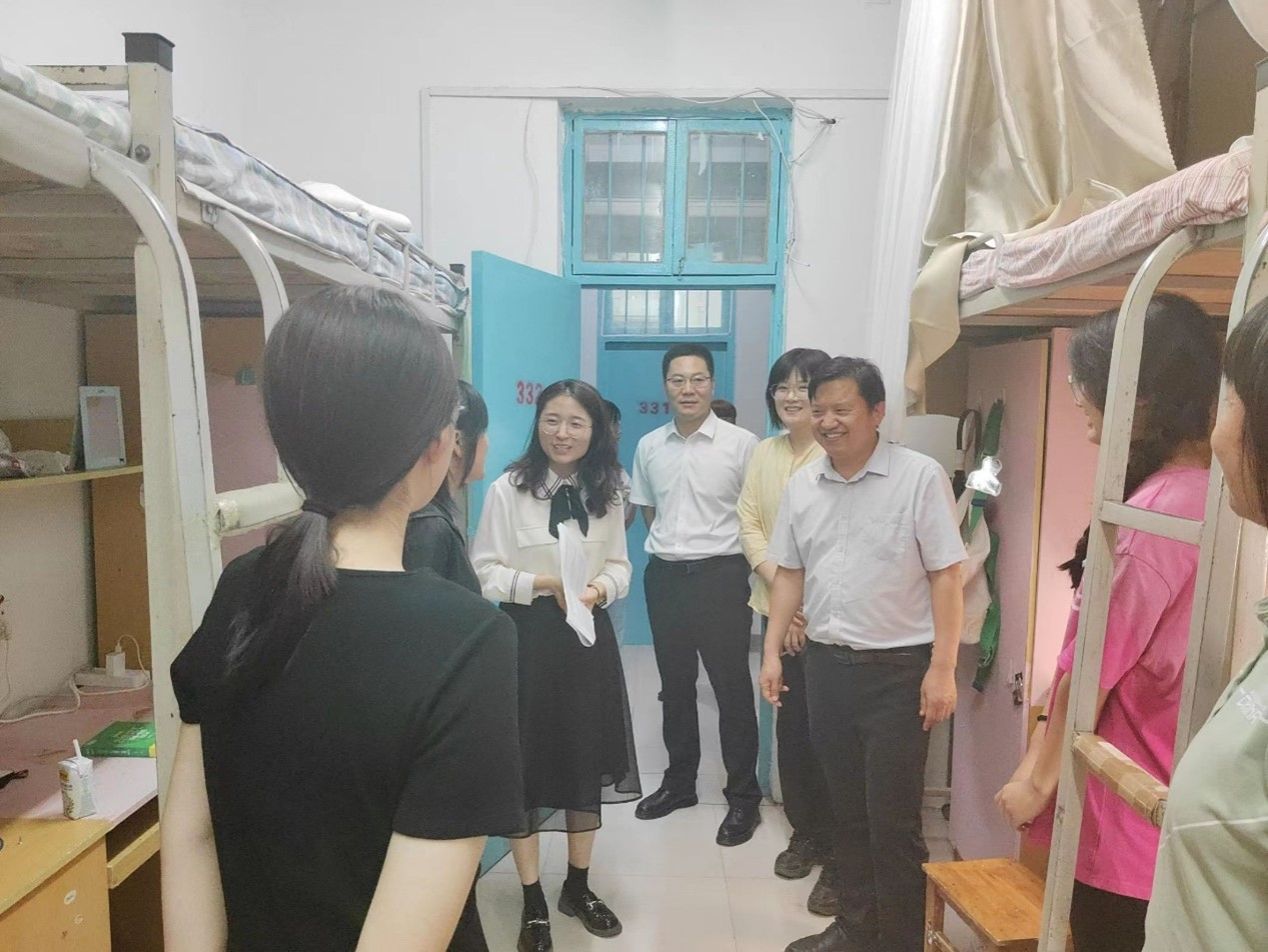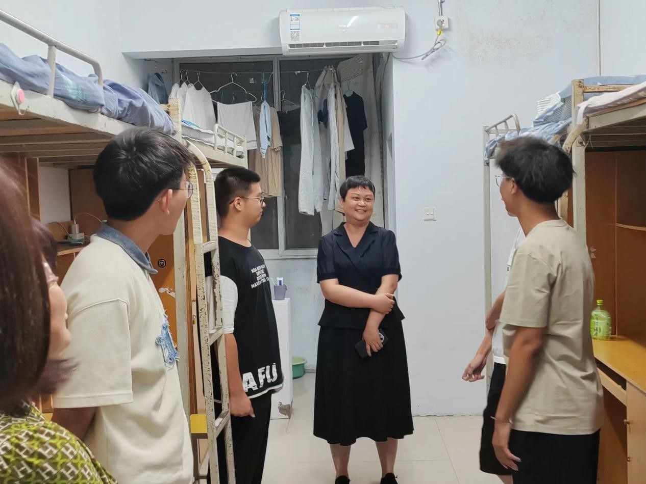 领导们分成两路,学院党委书记常凤香、副院长屈建莹、吴玉锋、党委办公室主任兼2022级辅导员宁攀,前往男生宿舍;党委副书记马文海、副院长张磊、团委书记兼2020级辅导员郭佳、2023级新生辅导员田梦,前往女生宿舍。学院领导与同学们进行了亲切的交流,了解到同学们来自五湖四海,询问了同学们是否适应,有没有困难。同学们纷纷表示色中色