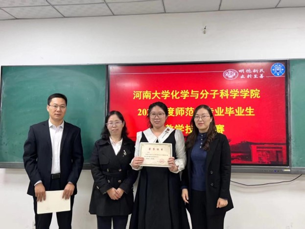 为提高化学师范生教学素养,培养新时代高素质的师范教育人才,学院于10月23日在106教室举办了2023年度化学师范类专业毕业生教学技能大赛。开封市第八中学教师刘宁、开封化建中学教师贡娅欣,色中色