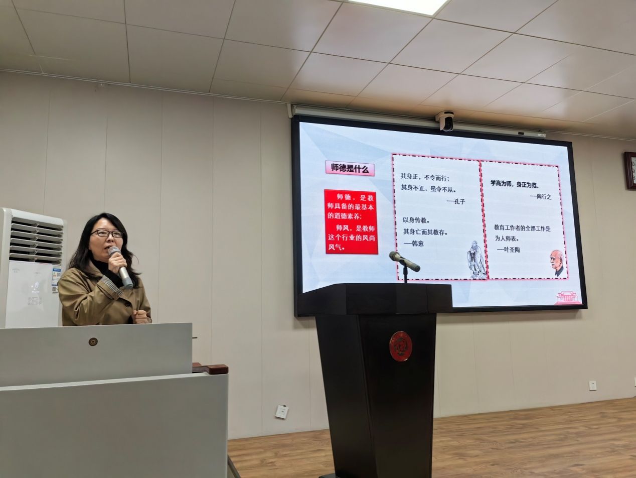 好老师”为主题,围绕“师德师风的重要性、师德师风警示案例通报、高校师德师风规范要求、做什么样的好老师”四个方面进行讲解。同时,她结合工作实际,分析了当前师德师风建设面临的新形势和新挑战,阐述了新时代教师肩负的新使命。赵炎表示,教师不仅要具备扎实的专业知识和教学技能,还要具备高尚的道德品质和行为规范。她希望全体教职工要牢记自己的职责和使命,树立正确的教育理念,不断提高自身素质,努力做具有教育家精神的新时代好老师。