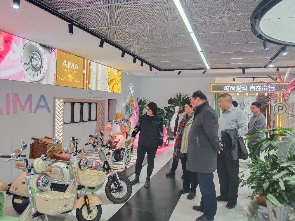 在爱玛科技集团股份有限公司总部,孙君健一行参观车辆组装车间和企业荣誉及新产品展厅,在座谈时,企业人力资源部负责人详细介绍了企业的生产、经营、发展和人才需求情况。