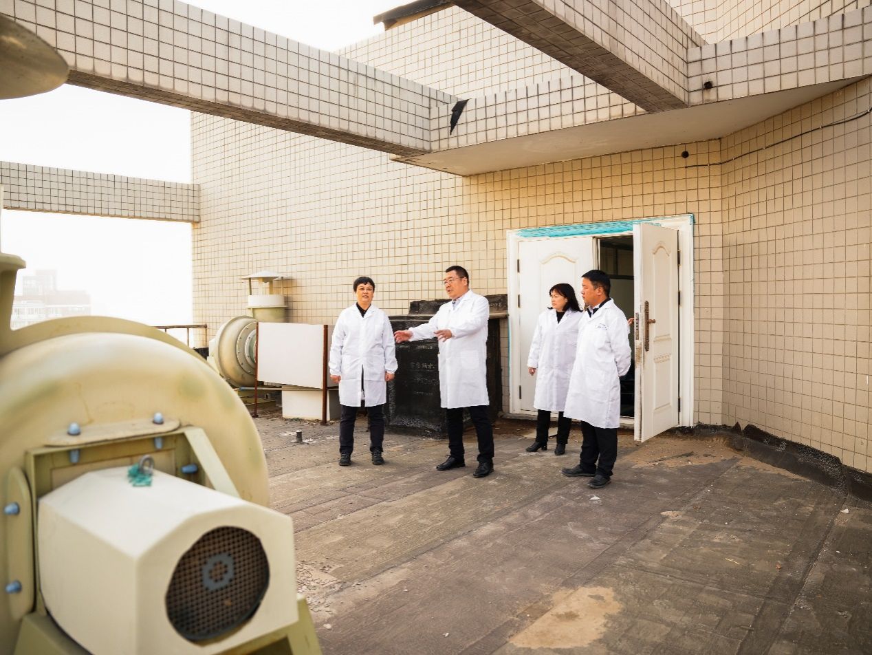 乔梁现场查看了学院各省部级以上科研平台实验室的通风设备、易燃易爆药品柜、消防安全设施、固定资产报废中转站等的使用和管理情况,并到楼顶查看了楼宇的整体通风系统。