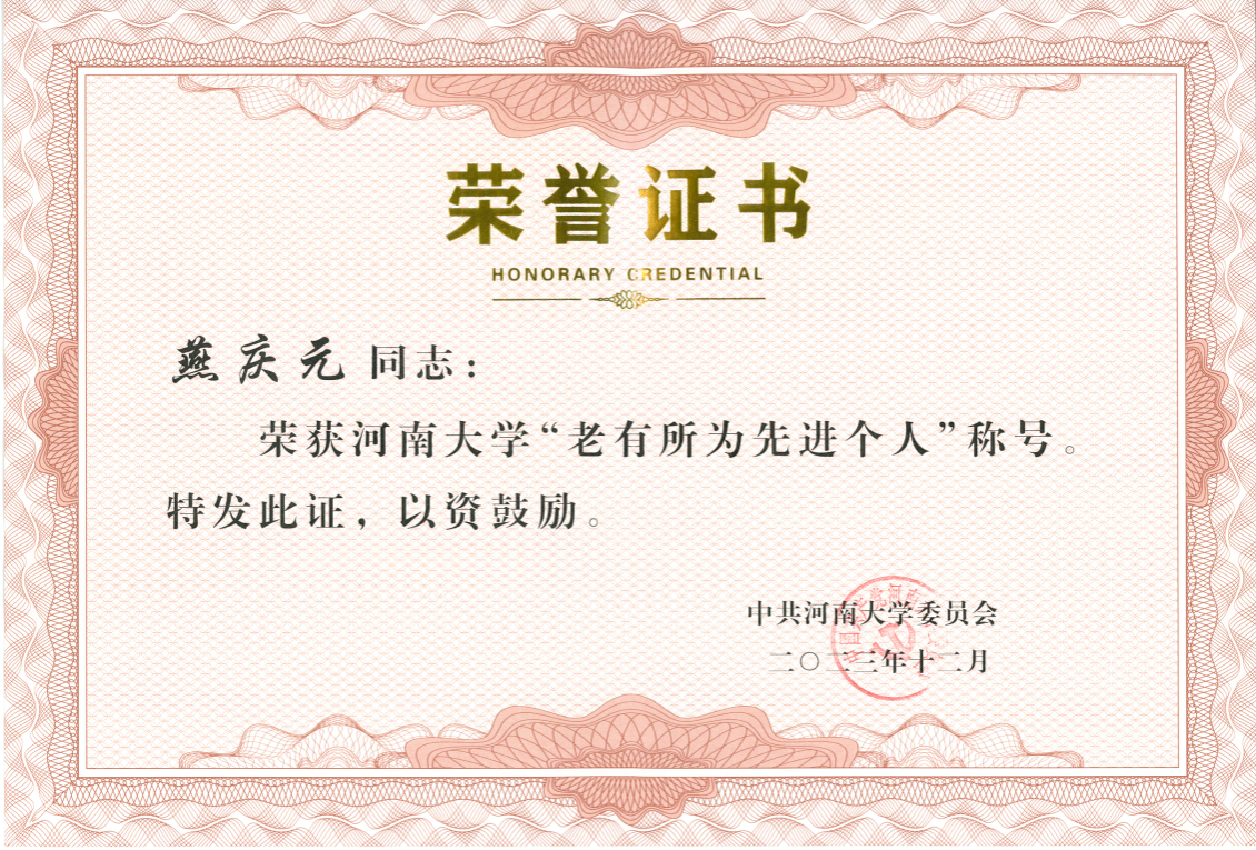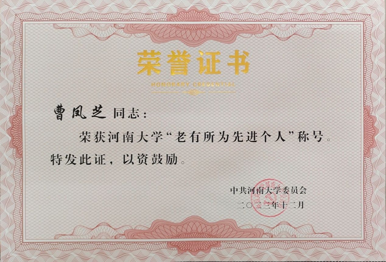 “老有所为”先进个人荣誉称号。