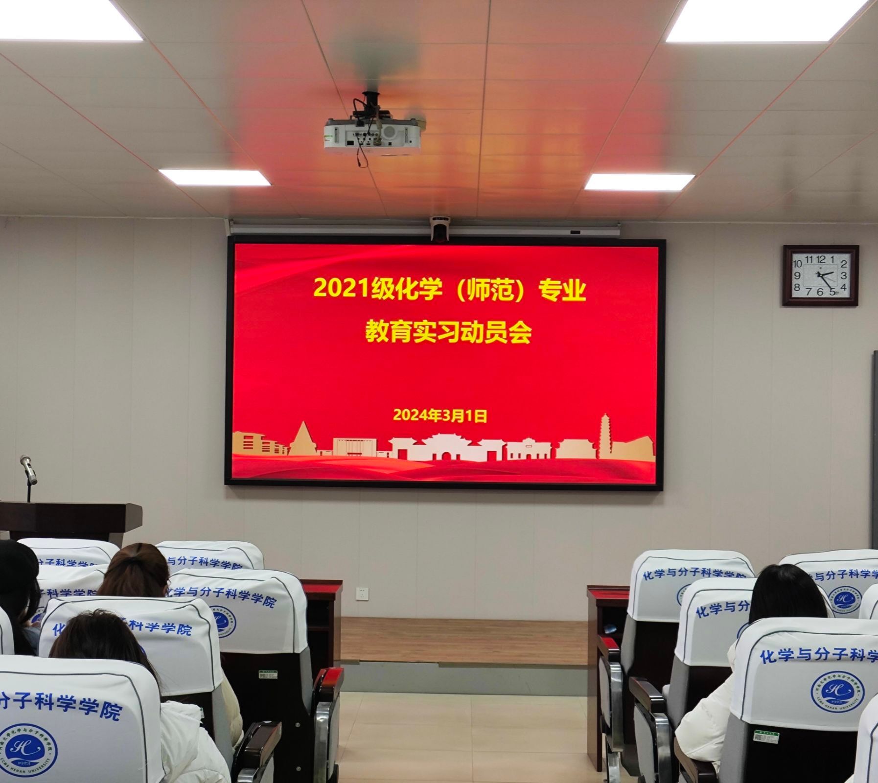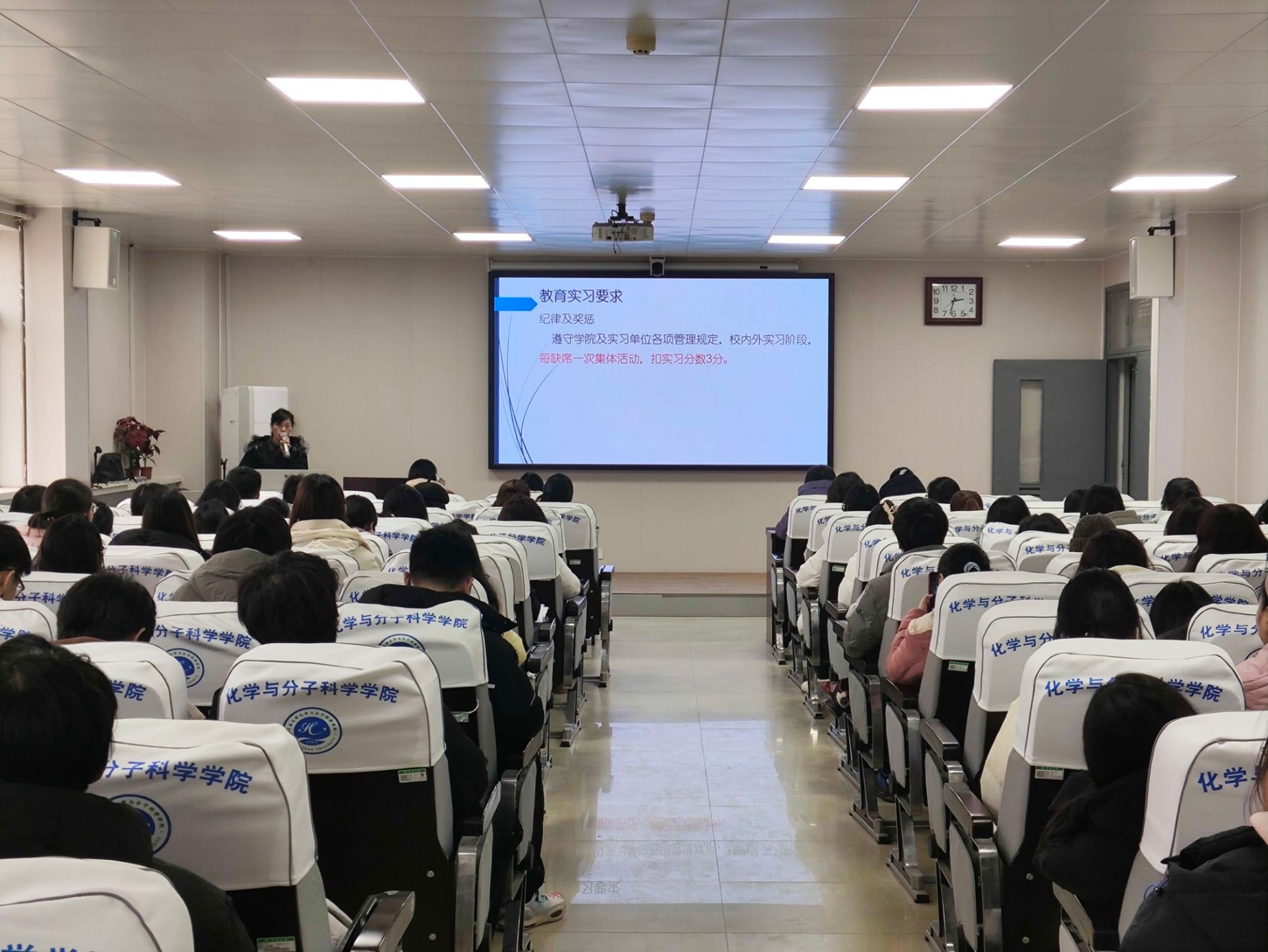 教育实习动员大会于学院226会议室举行,会议由李亚敏教授主持,2021级化学专业全体师范生参加。