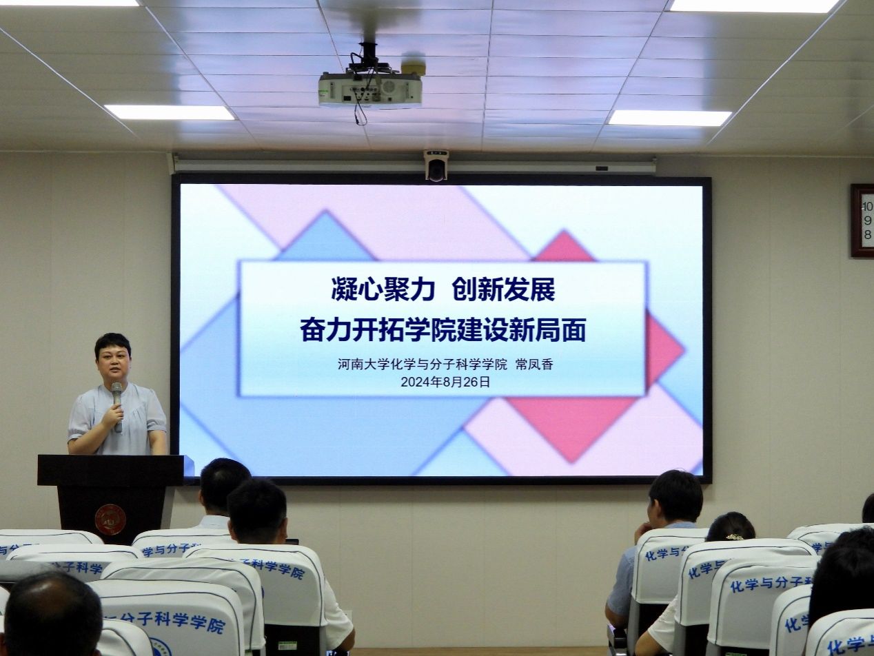 学院党委书记常凤香传达学校暑期工作会议精神,大会对学校发展战略、人才人事、新工科、新医科建设、学科建设和专业调整、文化科技及创新文化建设、重大基础设施及保障条件提升、郑州新园区规划等方面进行了详细的谋划,为我校“双一流”“双航母”建设指明了奋斗方向。色中色