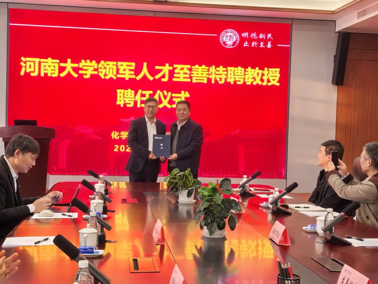 10月22日上午,我校在郑州校区九章学堂中楼三楼会议室举行领军人才至善特聘教授聘任仪式。受聘领军人才、国家海外高层次人才计划入选者赵伟教授,副校长张礼刚,学术副校长陈雪波,学校相关职能部门负责人、化学科学部部分成员单位主要负责人、教师代表等参加仪式。仪式由高层次人才办公室主任路杨主持。