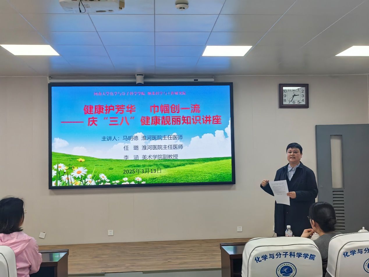 为庆祝我国第115个“三八”国际劳动妇女节,3月13日,学院工会在学院226举办学院工会举办“健康护芳华,巾帼创一流”— 庆“三八”健康靓丽知识讲座。此次讲座邀请淮河医院乳腺科主任医师马明德、妇产科主任医师任璐、色中色
