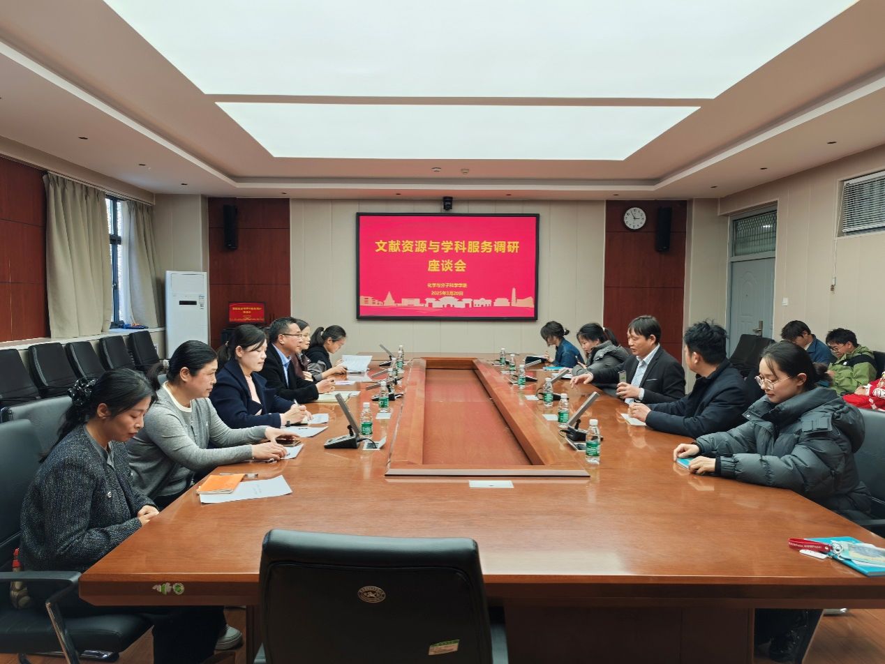长期以来对图书馆工作的支持表示感谢。他表示,图书馆始终坚持以服务学校教学科研为中心,致力于为全校师生提供优质的文献资源和服务。此次调研旨在深入了解化学作为筑峰学科对文献资源和学科服务的需求,以便图书馆能够更有针对性地开展工作,更好地服务于学院的学科建设和人才培养。