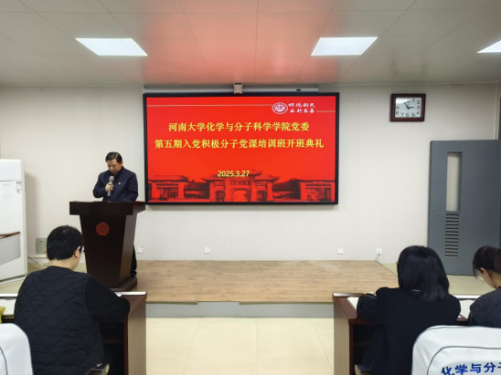 党委第五期入党积极分子党课培训班开班典礼于学院二楼报告厅隆重举行。学院党委书记常凤香、党委副书记马文海、纳米科学与工程研究院副主任张俨娜、本期培训班班主任、学院党委办公室主任宁攀、部分学生党支部书记以及全体培训班学员参加典礼。开班典礼由马文海主持。