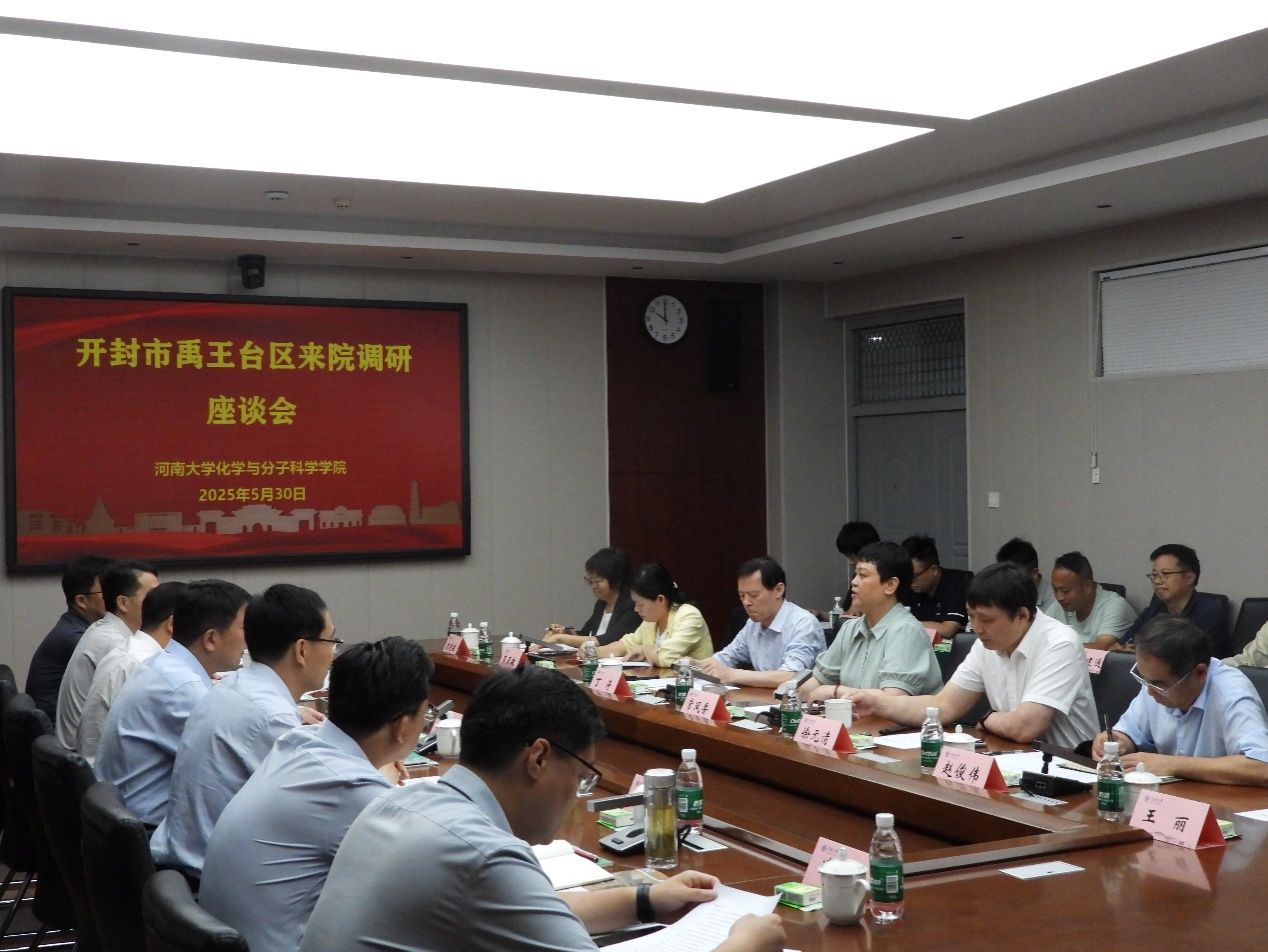 220会议室举行,由常凤香主持。常凤香首先对禹王台区政企代表团的到来表示热烈欢迎,称此次交流是双方共聚一堂、共绘蓝图、持续深化合作的重要时机。学院执行院长徐元清详细介绍了学院发展历程、科研平台建设、人才队伍结构、代表性科研成果及未来规划,并着重阐述了色中色