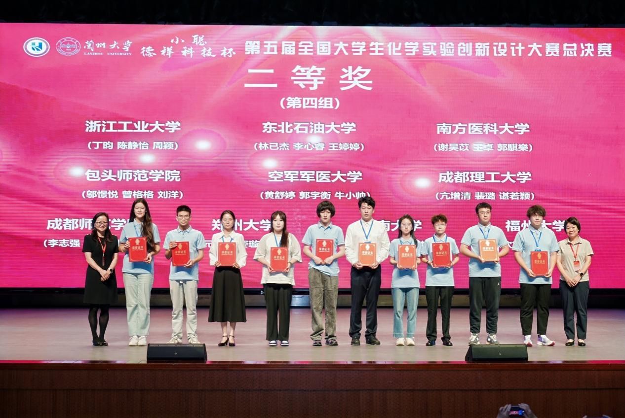 2025年8月21日-24日,“小聪-德祥科技杯”第五届全国大学生化学实验创新设计大赛总决赛在兰州大学成功举办。院学子凭借扎实的专业功底与创新实践能力,一路披荆斩棘,斩获全国二等奖,为学校和学院再添荣誉!