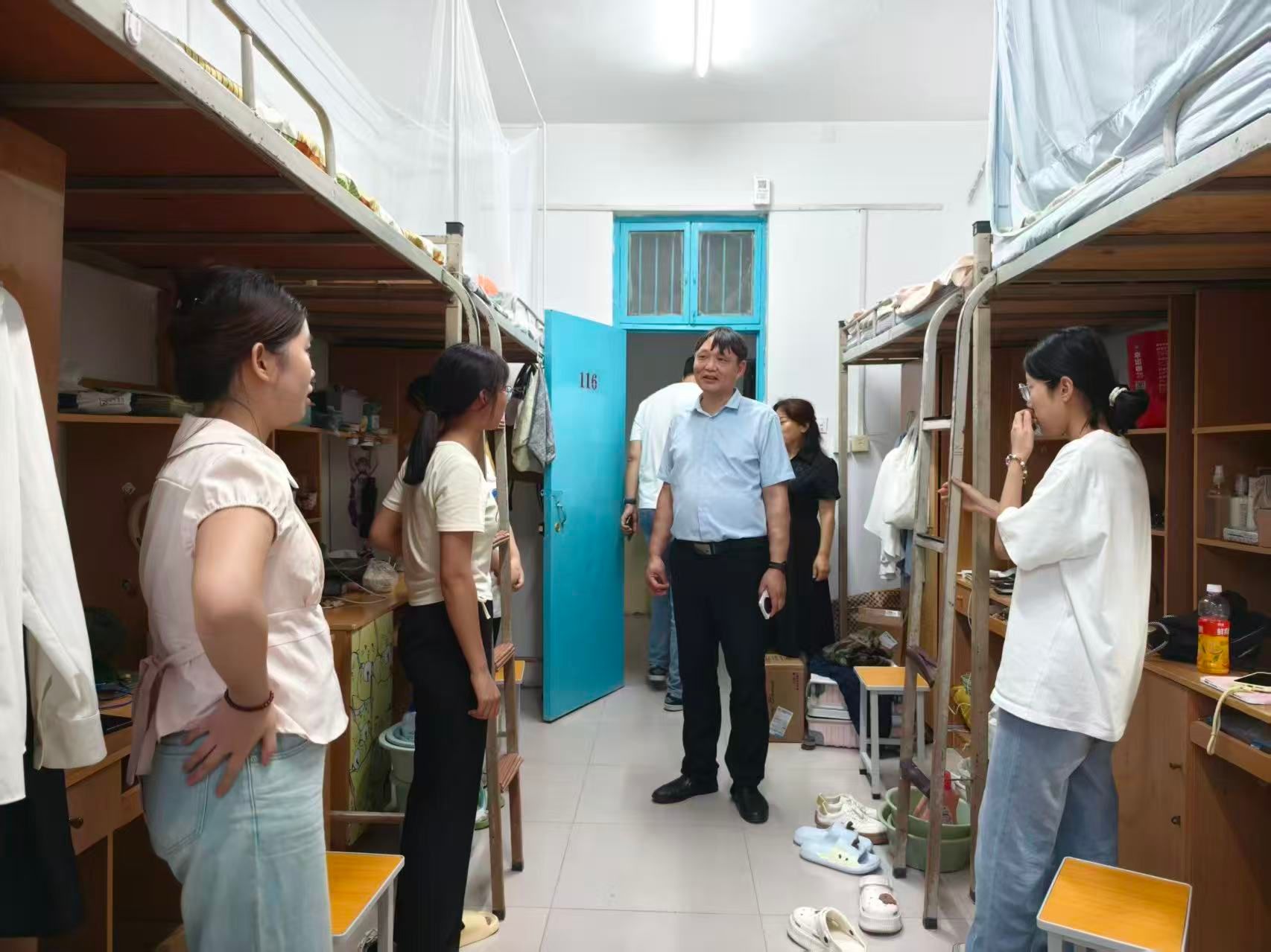 31日晚,学院领导老师分别在郑州校区和金明校区走访慰问新生。党委书记常凤香带队在郑州校区,执行院长徐元清带队在开封金明校区,老师们走进一间间新生宿舍,与同学们亲切交谈。询问新生们的入住适应情况,细致查看住宿环境,叮嘱大家注意用电安全与宿舍卫生,尽快熟悉校园生活、融入集体。温暖的交流让新生们感受到学校与学院的贴心关怀,也进一步增强了他们对新环境的归属感。