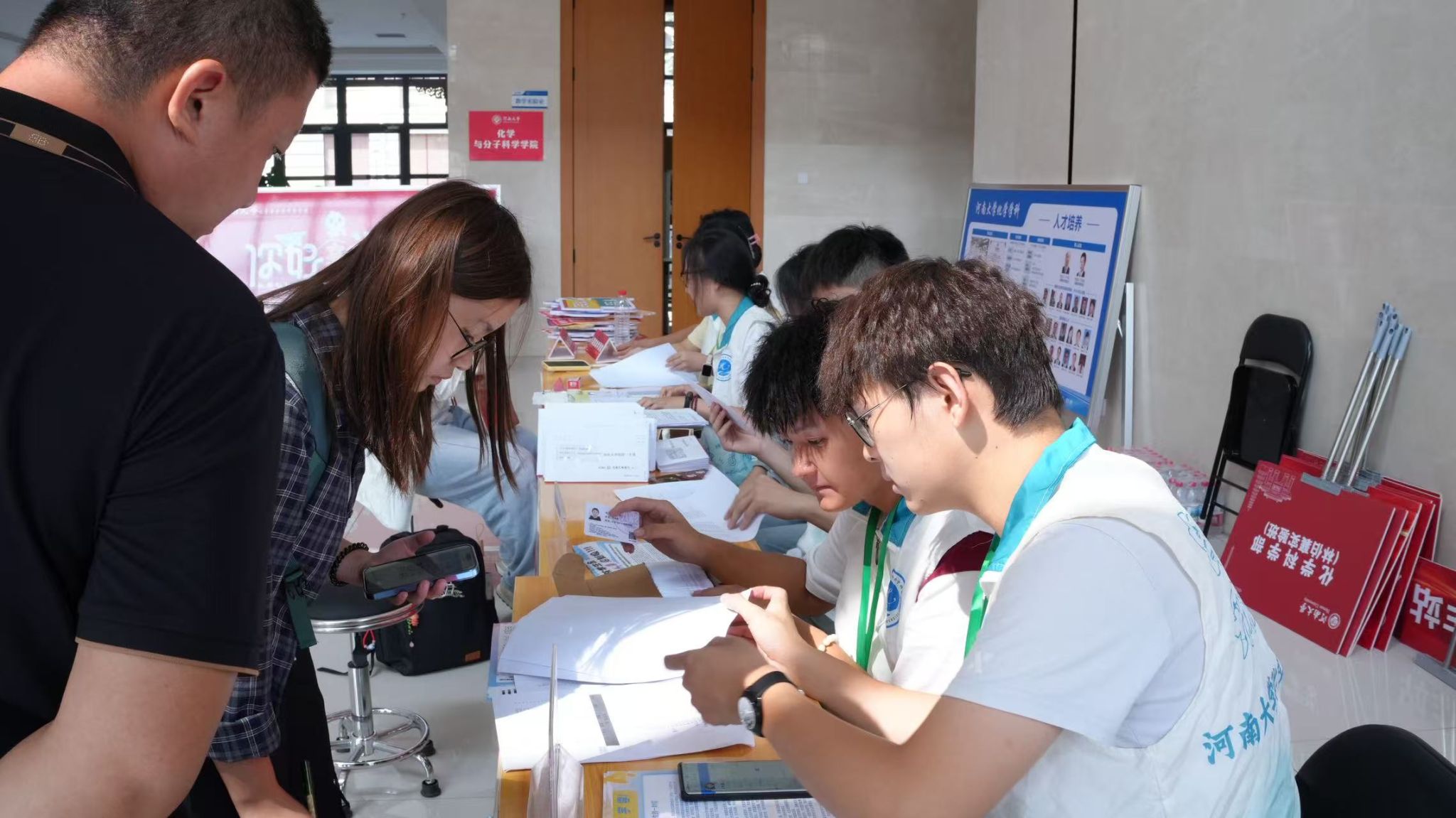 郑州校区报到,而研究生新生在金明校区报到,因此学院在两地同时设立迎新站点。