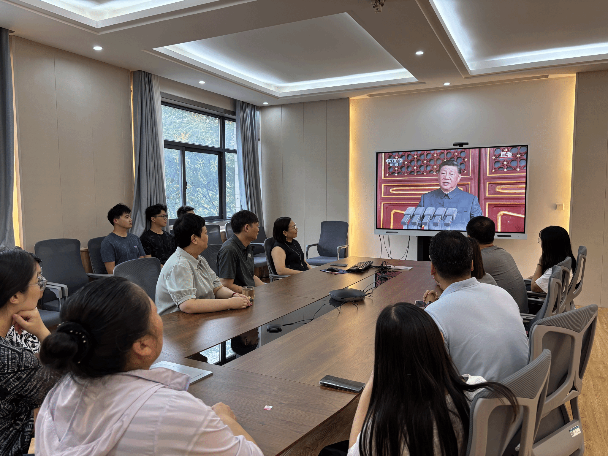 组织师生集中观看纪念中国人民抗日战争暨世界反法西斯战争胜利80周年大会直播,共同致敬伟大胜利。