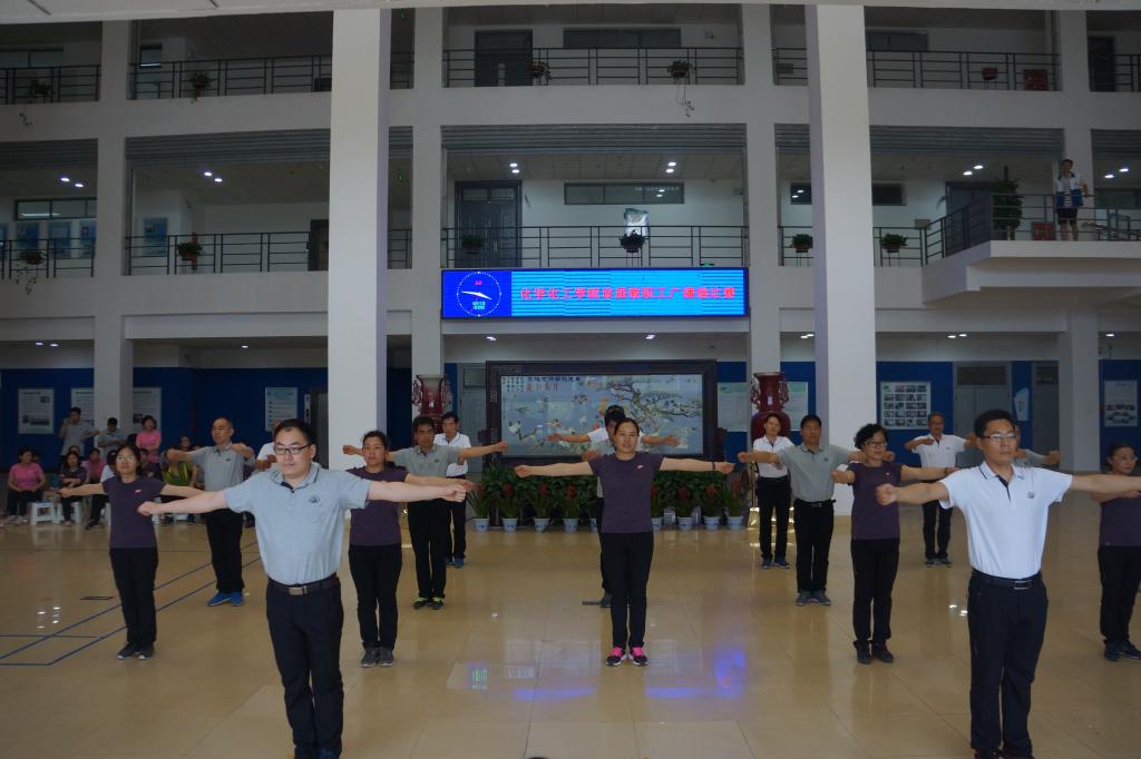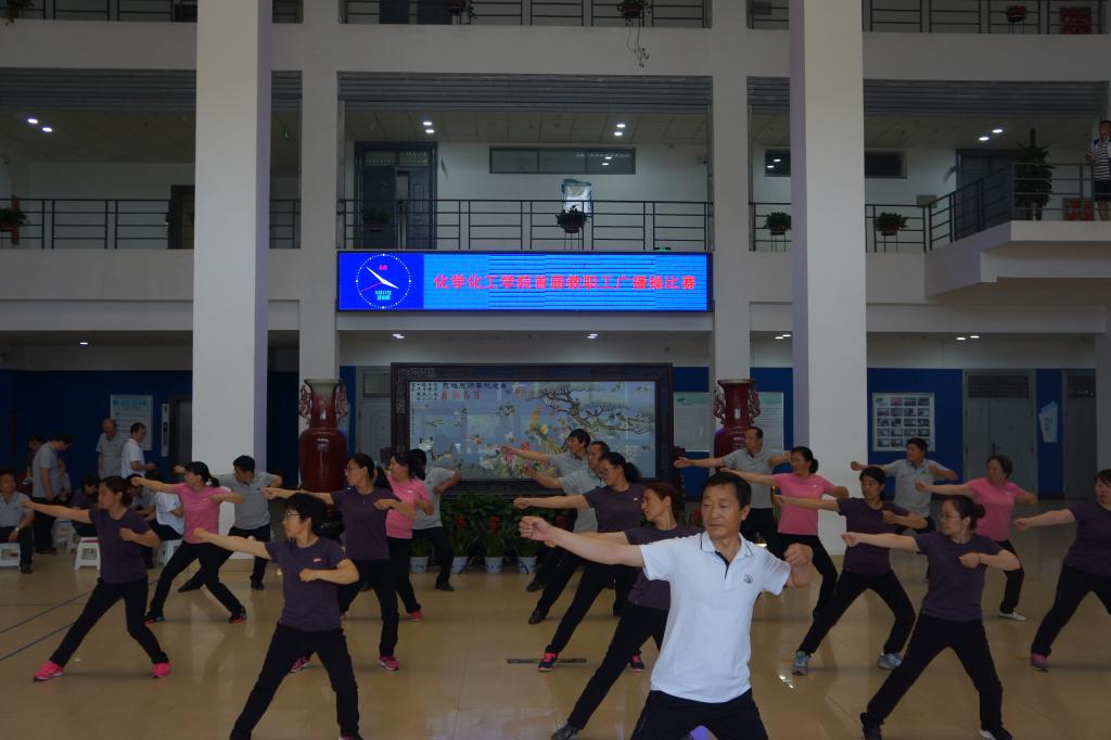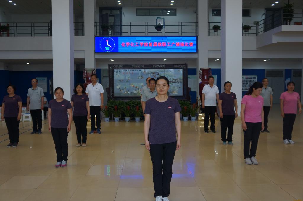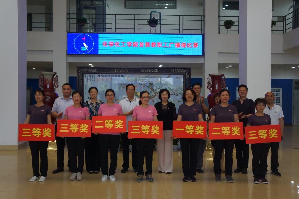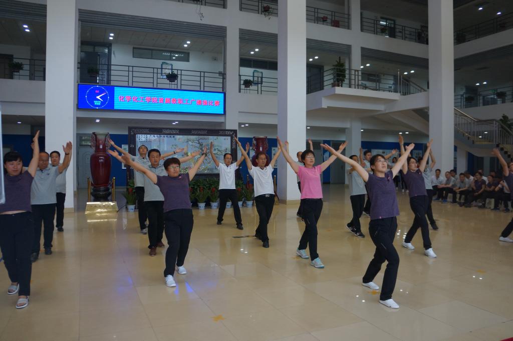 为进一步增强教职工体质,丰富教职工文化体育生活,5月17日下午,化学化工学院举办首届教职工广播体操比赛。校工会主席沈洁霞、副主席罗莉、焦峰、宋菊芳等工会领导应邀参加。比赛由国际教育学院副书记、工会主席李从国,数学与统计学院副书记、工会主席王中国及体育学院四名学生担任评委,化学化工学院教师陈欣主持,学院全体教职工参加。