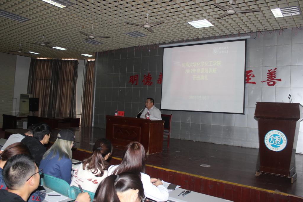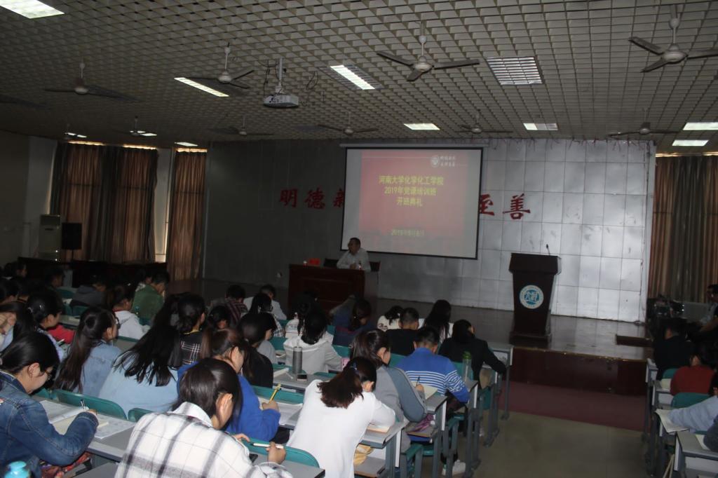 为加强对入党积极分子的培训,扎实做好学院入党积极分子培养和党员发展工作。5月6日中午,化学化工学院2019年党课培训班开班典礼在金明校区圆形报告厅顺利召开。学院230余名入党积极分子培训学员和各年级辅导员老师参加典礼。开班典礼由学院党委副书记马文海主持。