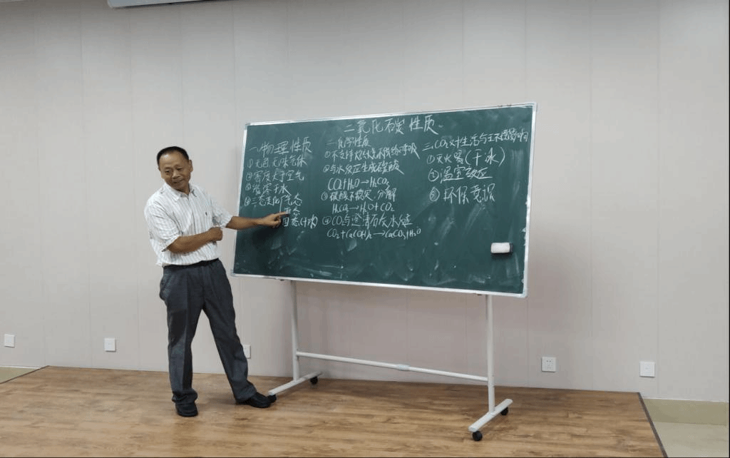 在讲解完板书设计的理论知识后,同学们与李趁意积极互动,三名同学主动上台展示自己课下针对《CO2的性质》和《元素周期表》两课设计的板书。李老师从整体到部分对学生们的板书进行了点评。全场聆听者受益匪浅,时时送上阵阵热烈的掌声表示支持认同!