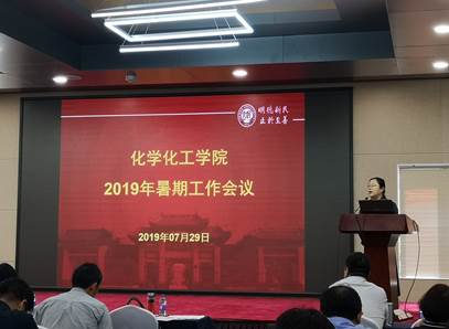 近日,化学化工学院召开了2019年暑期工作会议,为了保证会议质量,会议分为两个阶段,分别封闭在开封和中牟两地举行,院党政领导班子成员及全体教职工参加了会议。