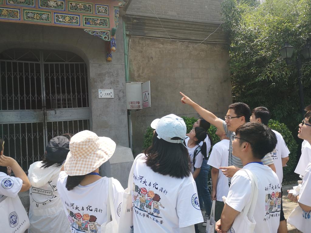 首先,张磊介绍了化学化工学院的旧址。之后,他带领营员们参观明伦校区校园。大礼堂,是一幢宫殿式的古老建筑,青砖灰瓦、飞檐斗阁、气势恢宏,见证着河大学子的成长。铁塔素有“天下第一塔”之称,九百年巍然屹立,河大学子更有“铁塔牌学子”之称。之后,又先后参观了古城墙、科举考试最后的场地、李大钊像等。同时,张磊还向营员们介绍了明伦校区老校门的由来,色中色