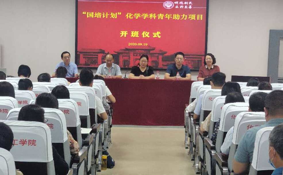 9月19日上午, “国培计划(2020)”中西部乡村中小学青年教师助力培训(初中化学)项目开班典礼在化学化工学院学术报告厅举行。化学化工学院常务副院长、化学学科国培计划领导组组长柏䶮,化学化工学院副院长、副组长杨更须等领导出席,化学化工学院院长助理、化学学科国培计划领导组副组长许英教授主持开班仪式。