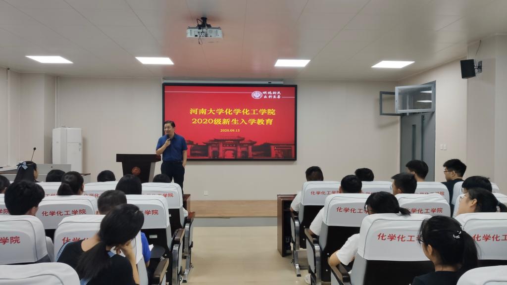 最后,副院长刘学军和化工专业的郭泉辉老师对新生进行了专业教育。刘学军向新生介绍了专业课程设置、学院师资情况以及学院教风学风等,讲解了学院整体学科的发展动态,同时他向化学类新生介绍了化学和应用化学在专业课设置上的区别,研究方向的差异,就业选择的不同,为同学们对接下来选择化学还是应用化学提供了帮助。郭全辉向化工班新生详细介绍了化学工程与工艺专业特点、专业发展现状、专业学习方法以及未来职业前景等,为新生树立专业学习信心。