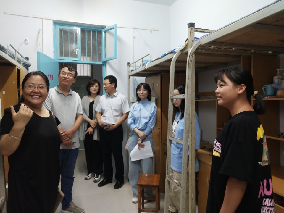 12日晚7点,学院领导来到宿舍看望新生。学院党委书记乔梁、党委副书记马文海、副院长徐元清前往男生宿舍,常务副院长柏䶮、副院长刘学军、副院长张磊去看望了女生。