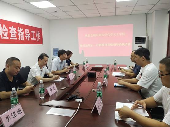 8月13日下午,学院副院长徐元清、阻燃与功能材料河南省工程实验室主任丁涛、副主任房晓敏、化学系副主任徐浩、李建通等一行到开封联昌药业有限公司参观交流并洽谈合作事宜。开封联昌药业有限公司董事长宋恒志、技术中心主任王阿宝等在公司会议室接见了访问团。
