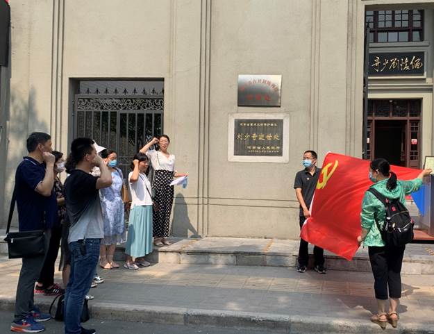 全体人员首先参观了刘少奇在开封陈列馆。陈列馆坐西朝东,展厅内陈展了150余幅珍贵历史图片和大量文物。从一张张珍贵的历史照片,一件件历史文物,一个个感人至深的故事中,大家重温了刘少奇同志为共产主义事业奋斗终生的革命历程。本次活动使全体党员同志们接受了一次爱国主义教育的洗礼,深切缅怀革命先烈,牢记初心使命,继承和弘扬党的优良传统和作风。在鲜红的党旗下,全体人员在支部书记冯彩霞的带领下,举起右拳,重温入党誓词。
