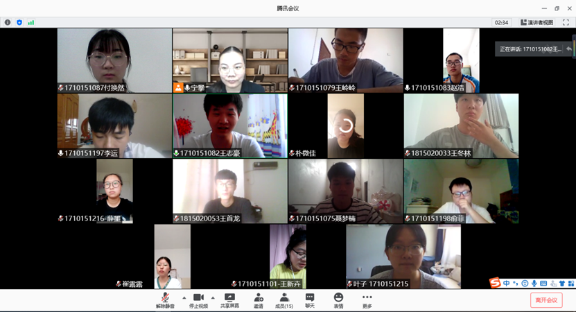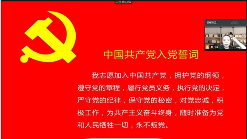 最后,宁攀做总结发言。她指出,虽然疫情凶险,但在党中央的正确领导下,我们一定能够共克时艰,取得这场疫情防控阻击战的最后胜利。作为大学生党员,虽不能奋战在抗疫一线,但可以积极配合国家和学校的疫情防控工作,少出门,少聚集,引导身边的人科学防控,每天按照学校要求填报健康状况,协助村委会或社区做一些力所能及的防疫工作,这也同样是在为国家做贡献。在中国共产党成立99周年之际,让我们每名党员牢记神圣使命,不忘初心嘱托,在新时代、新征程上不断创新,做一名新时代合格的学生党员。