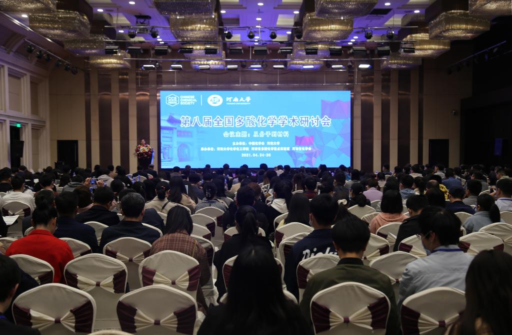 化学化工学院、河南省多酸化学重点实验室和河南省化学会承办。洪茂椿院士担任会议主席和学术委员会主任,张锁江院士担任会议副主席。来自全国高校和研究单位的一线科学家、知名专家、中青年学者以及从事相关研究的研究生等500余人参加了会议,其中包括中科院院士2名、国家杰出青年基金获得者30余名。大会共安排大会报告3场、大家论坛1场、主题报告21场、邀请报告54场、口头报告34场,墙板48面,同时吸引了多家企业参展。与会代表聚焦“从分子到材料”主题,围绕多酸合成化学、多酸功能材料、多酸催化化学、多酸能源化学以及簇科学交叉领域的发展动态,通过大会报告、主题报告、邀请报告、口头报告和墙报等多种形式,全面展示我国近三年来所取得的最新研究进展和成果,深入探讨多酸化学所面临的机遇、挑战及未来发展方向。