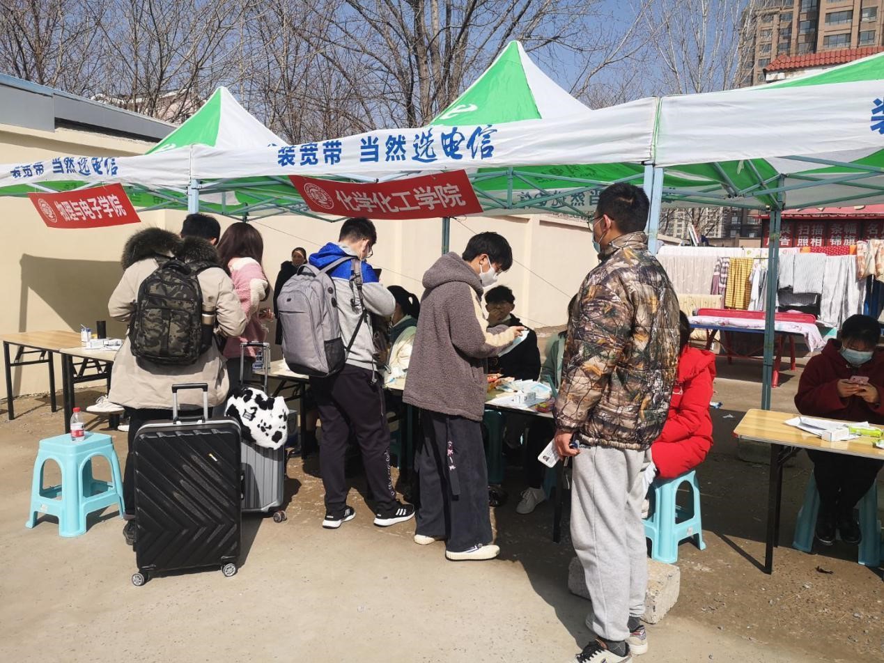 党委书记翟新礼、党委副书记马文海等人也来到报到站点,仔细检查站点疫情防控设备是否齐备,亲切问候返校学生的返途情况、假期生活状况等,并提醒同学们回到校园后也不能忘记个人防护、注意保持个人卫生,调整状态尽快回归校园生活,并欢迎同学们安全返校。