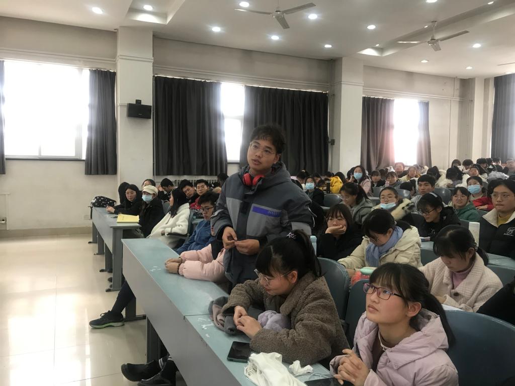 海傲同学曾在第十二届及第十四届'挑战杯”课外学术科技竞赛中分别荣获校级二等奖以及省级三等奖。此次宣讲会中,他结合自身的经验将赛前准备工作分为:确定选题、组队分工、作品创作、修改完善四大类。其中,海傲着重强调了团队分工的重要性。不仅如此,海傲还通过一些生动形象的比喻将比赛的小技巧、小妙招分享给大家,并展示自己的作品,使同学们对比赛有更加清楚的了解和认识。在互动环节同学们积极提出自己的问题,有关于选题的、有关于比赛周期的等等,海傲认真的一一解答。在宣讲会将要结束时,海傲用“取乎其上,得乎其中。取乎其中,得乎其下。取乎其下,则无所得也。”来告诫大家要认真对待这次比赛。