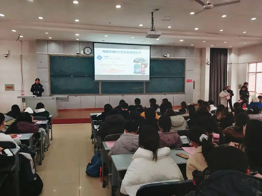 于7305教室开展“防电信诈骗”讲座,讲座共分两场。讲座由金耀路派出所民警张文同志主讲,学院全体在校本科生、研究生参加讲座。