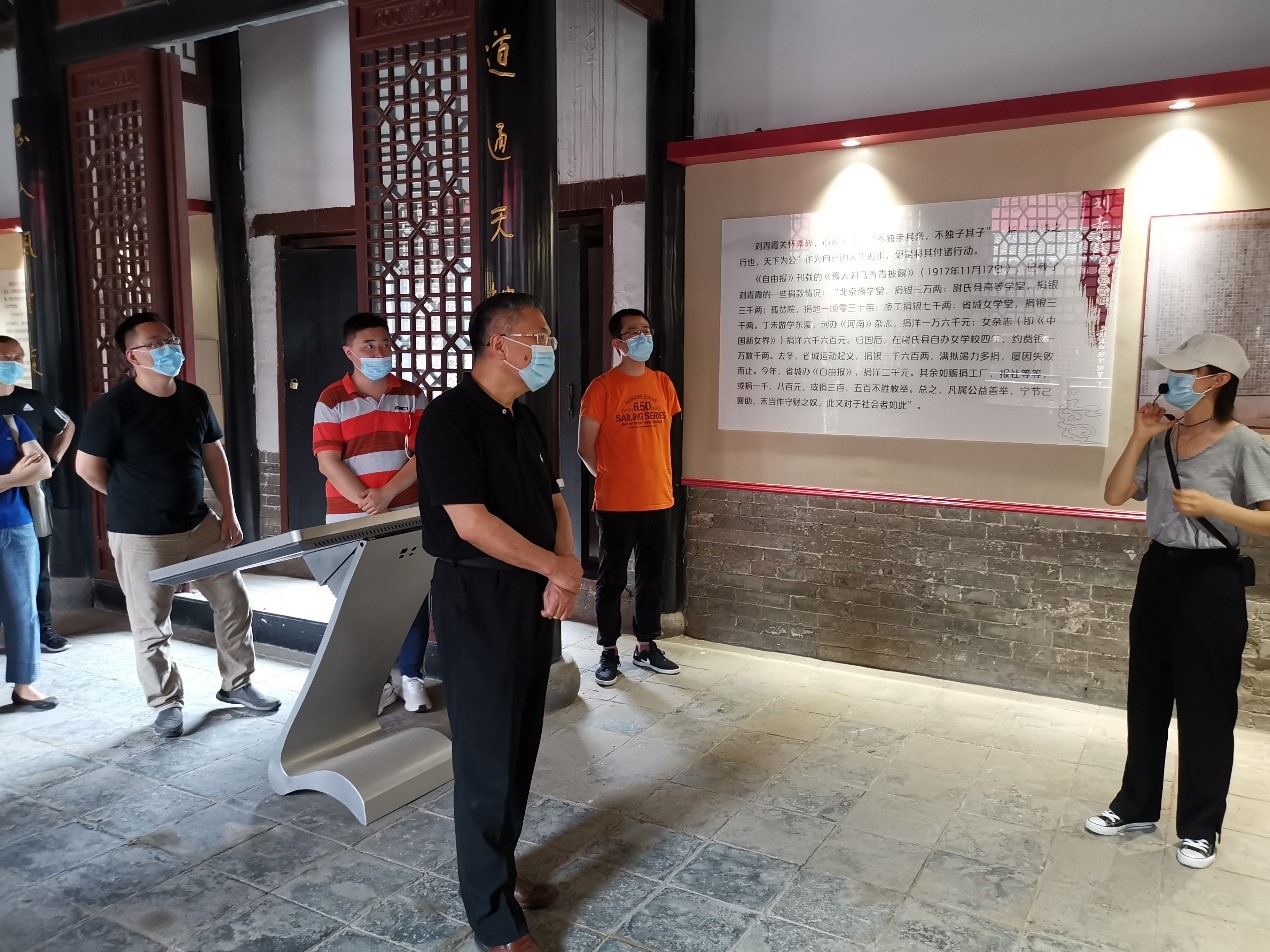 在刘青霞故居,大家在讲解员的带领下,认真参观了刘青霞故居,聆听了刘青霞生平的传奇经历。讲解员从投身革命、传播思想、创办学校、热衷公益四方面对刘青霞生平事迹进行了详细的讲解。大家在参观学习的过程中被刘青霞以天下为己任的担当精神所打动,在刘青霞蜡像前驻足行礼。