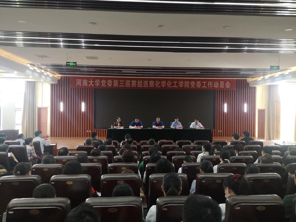 根据学校党委关于巡察工作的统一部署,5月27日下午,校党委第三巡察组巡察化学化工学院党委工作动员会召开。会前,第三巡察组组长韦胜军主持召开与化学化工学院党委书记翟新礼、副书记马文海的见面沟通会,通报了巡察任务和工作安排。会上,校纪委副书记、党委巡察工作领导小组成员张润泳就做好巡察工作提出了明确要求,韦胜军通报了巡察工作的主要任务、总体安排和工作方式方法等,校党委组织部副部长、党委巡察工作办公室副主任龚森宣读了《关于中共色中色