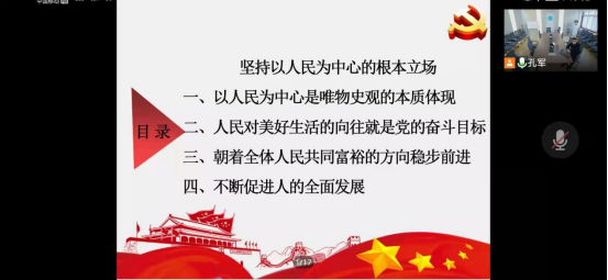 开展本期入党积极分子培训班第七讲——党的宗旨及安全观教育。为符合疫情防控要求,本次党课采用线上授课方式,由学院副院长孔军为大家讲解。