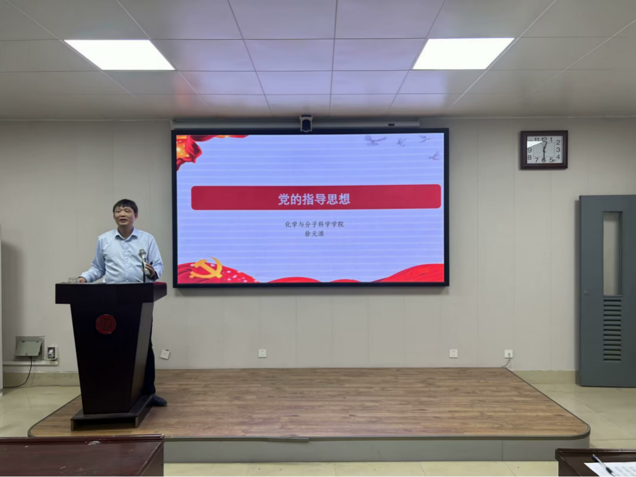 在学院226会议室开展了本期入党积极分子党课培训第八讲,学院副院长徐元清以“党的指导思想”为题,为全体培训学员做专题讲座。