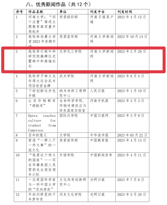 荣获新闻宣传先进集体;党委办公室主任、2022级辅导员宁攀被评为先进个人;2021级王志远、2023级田进虎被评为优秀通讯员;2022级孟姗、任秋潼被评为优秀编播员;“我校举行碳中和研究院揭牌仪式暨碳中和高端论坛”被评为优秀新闻作品。