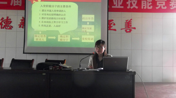 程亚敏先向同学们介绍了本学期党课安排及相关要求,强调了学习党课对个人发展的重要性,调动了同学们学习党课的积极性,主动性。通过举例,程亚敏指出,每个同学都应该结合自己的专业知识,为社会谋福利,把集体利益放在首位。接着,程亚敏就发展党员的程序与方法进行详细讲解。她指出,发展党员程序分为发展对象的确定、培养和考察;预备党员的接收;预备党员的管理、考察和转正三个阶段,同学们应按照程序努力做好党员的培训工作。随后,同学们观看了党史纪录片《中国共产党万岁》。该片记录了党的光辉历程,从党成立以来取得的三个重大成就,党创造了中华民族团结富强的不朽功勋,使同学们清晰的认识到只有中国共产党才能领导新中国,才能实现国家的繁荣昌盛,才能推进社会主义现代化,才能实现共产主义。