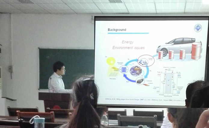 报告中,曹湖军博士首先介绍了氨分解的最新研究进展。其次,介绍了赫姆霍兹材料研究所做的有关K2[Mn/Zn(NH2)4]的化学合成和K2[Zn(NH2)4]-8LiH的化学合成的反应机理。然后介绍了固体离子导电性的相关研究情况。最后介绍了通过 in-situ Li2NH2Br改性的动力学问题研究以及氢化物酰胺体系的反应机理。报告结束,曹湖军博士对提出的问题一一进行了耐心的解答,赢得了热烈的掌声。