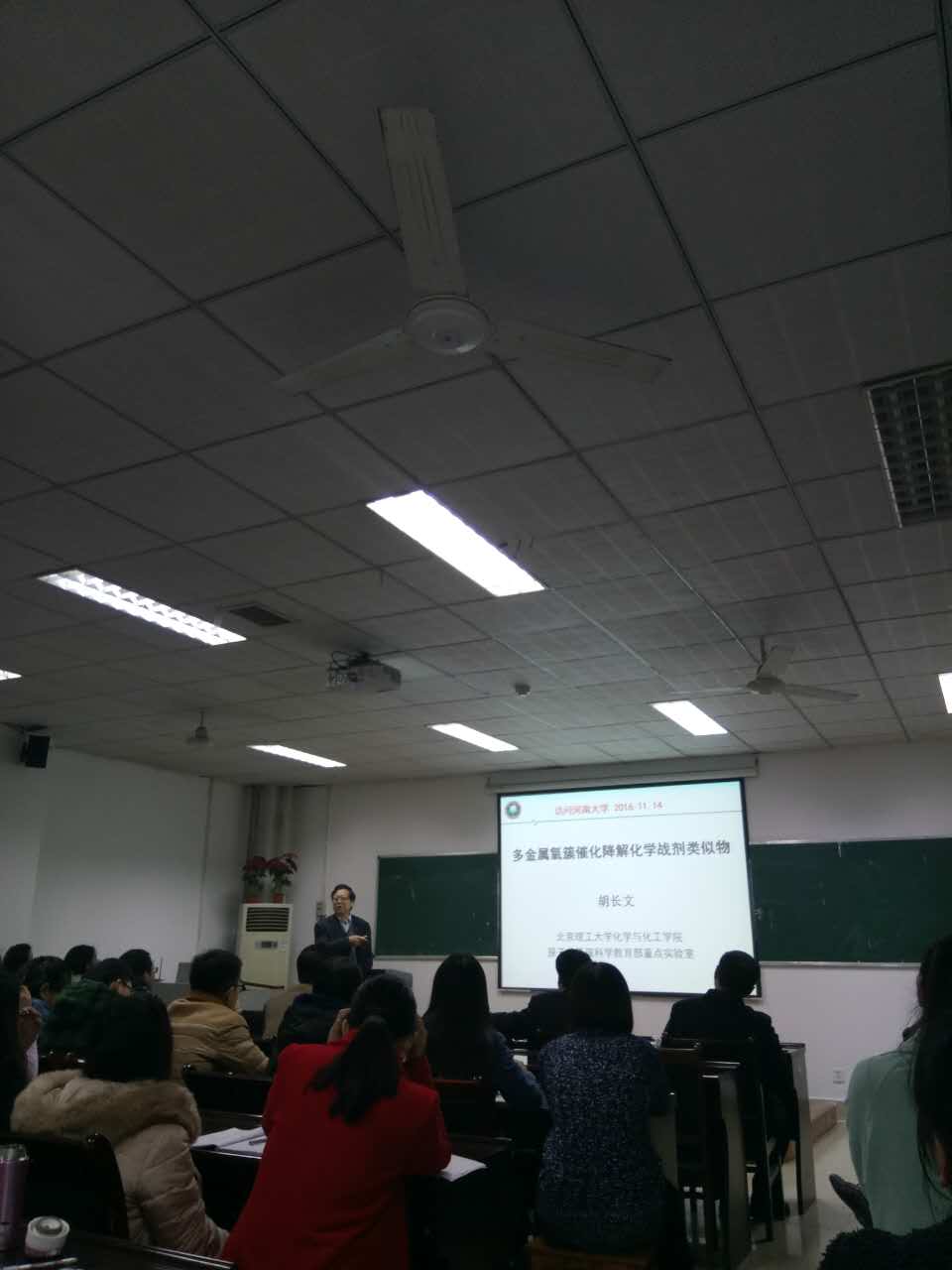 邀请,北京理工大学胡长文教授在化学化工学院226会议室作了一场题为“多金属氧簇催化降解化学战剂类似物”的学术报告,报告会由色中色