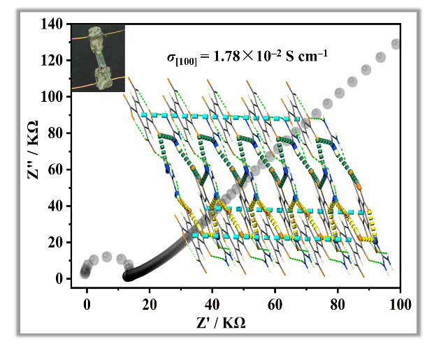 质子交换膜燃料电池由于具有超低排放、超高功率,绿色高效优势,受到关注。其核心质子交换膜如商业化的Nafion具有高的质子导电率,优异的稳定性及耐用性等优势,然而其价格昂贵,结晶性差,无法很好地探究结构与性能之间的关系,从而影响了对质子导电机制的研究。因而构筑具有高质子导电性、结构明确的新型质子传导材料具有挑战性和紧迫性。而单晶质子导电材料,可以提供清晰可见的质子传输途径,更好地解释质子传输机制,有利于探究结构与性能之间的关系。