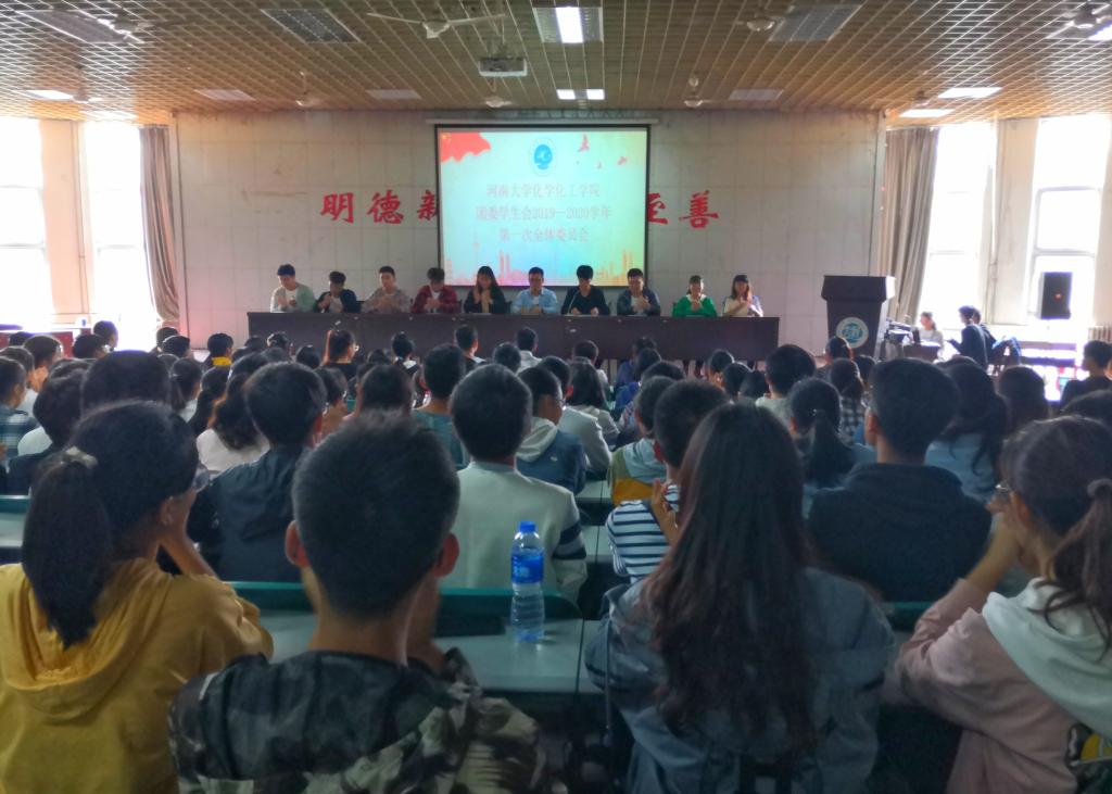 于圆形报告厅举行了化学化工学院2019年团委学生会第一次全体委员会。会议由团委学生会副书记王金鑫主持,学生会全体成员参会。